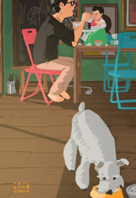 После рождения сына жизнь иллюстратора, художника-аниматора и автора манга из Тайваня Лан Шенцзе Blue (Blue Lan Shengjie), изменилась. И не только в бытовом плане. Одной из основных тем его творчества стала жизнь с ребенком. Эти картинки, запечатлевшие смешные и трогательные моменты будней отца и малыша, вызвали большой интерес, и в 2016 году вышла даже книга.