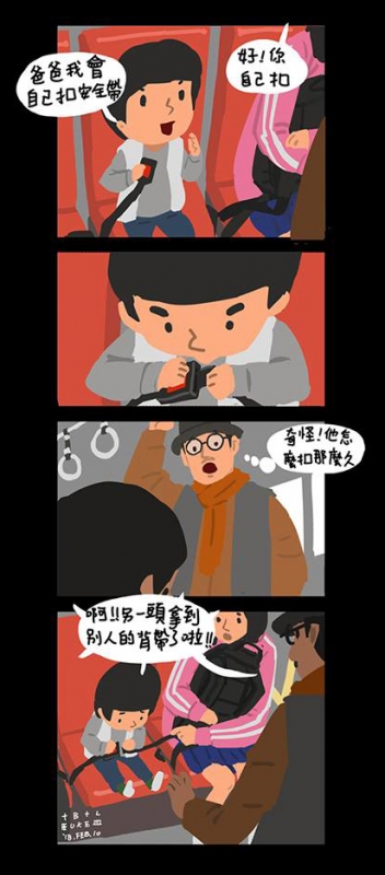 Когда отец говорит сыну пристегнуться в транспорте, а потом ему кажется, что что-то не так, и выясняется, что он пристегнулся, но не к тому © BLUE? /