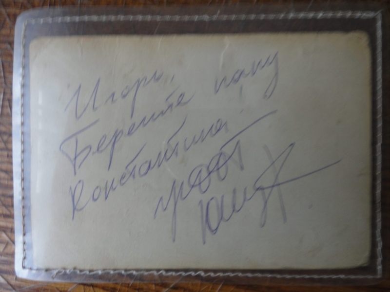 Сейчас эта фотография у меня. Я снимаю её с полки, переворачиваю и снова читаю: «Игорь, берегите папу Константина». Далее подпись лидера группы «ДДТ».
