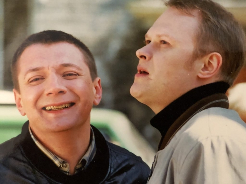 Игорь Копылов с актером Яном Цапником на съемках «Мангуста» — первого режиссерского проекта.