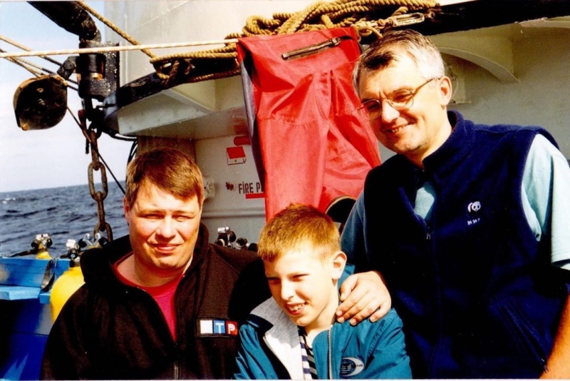Иван Затевахин с сыном Игорем и океанологом Андреем Гебруком.