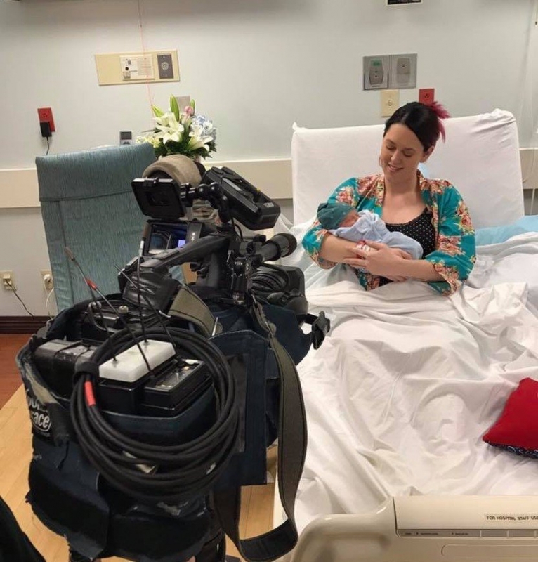 Западные СМИ сообщают, что девушке сделали кесарево сечение во время трансляции утреннего шоу Spencer’s Neighborhood. По словам Кэссиди, заранее это не планировалось. Однако когда схватки начались на две недели раньше срока, было принято решение работу радиостанции временно перенести в больницу вслед за рожающей коллегой.