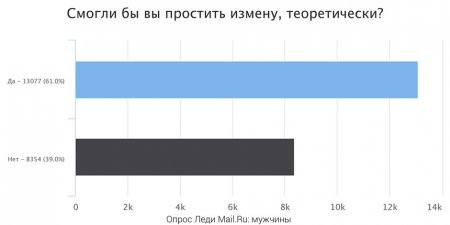 Теоретически простить измену готовы 48,8% опрошенных мужчин и 61% женщин.