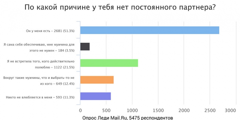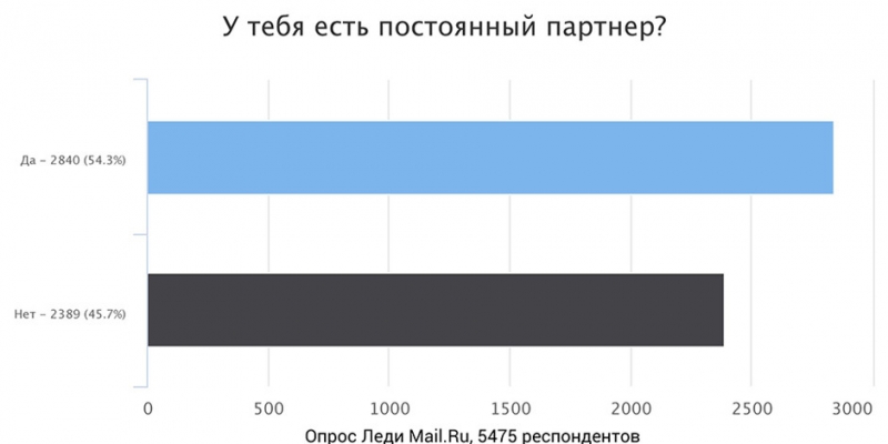 Оказалось, что чуть меньше половины женщин, принявших участие в опросе, не имеют постоянного партнера.