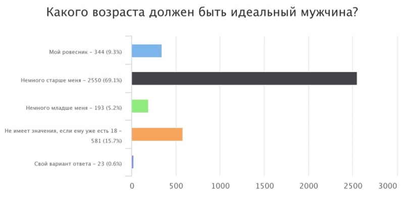 В идеале избранник должен быть немного старше. Этот пункт выбрали 69,1% опрошенных.