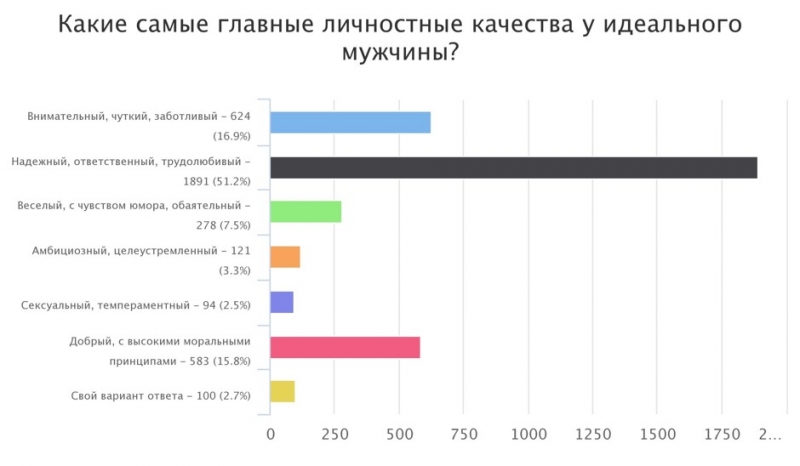 Кстати, говоря о личностных качествах, женщины по-прежнему выбирают «ответственность и трудолюбие» — 51,2%.