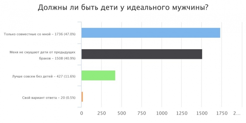 Также идеальный мужчина должен быть не обременен детьми, хотя довольно много респонденток сообщили, что их не смущают дети от предыдущих браков.