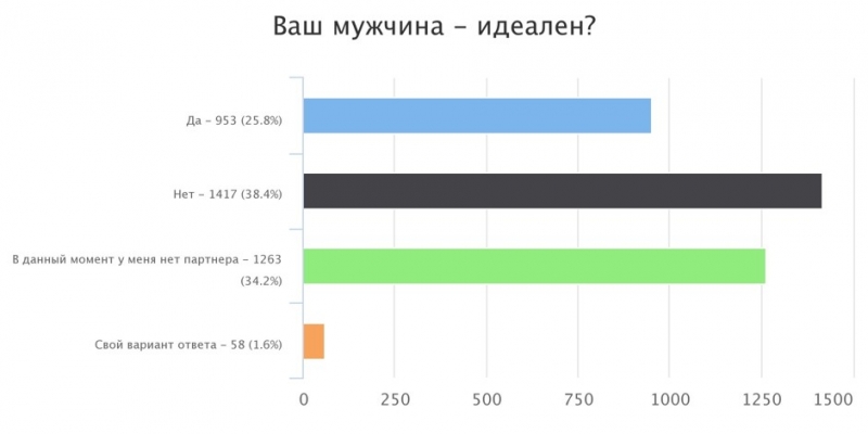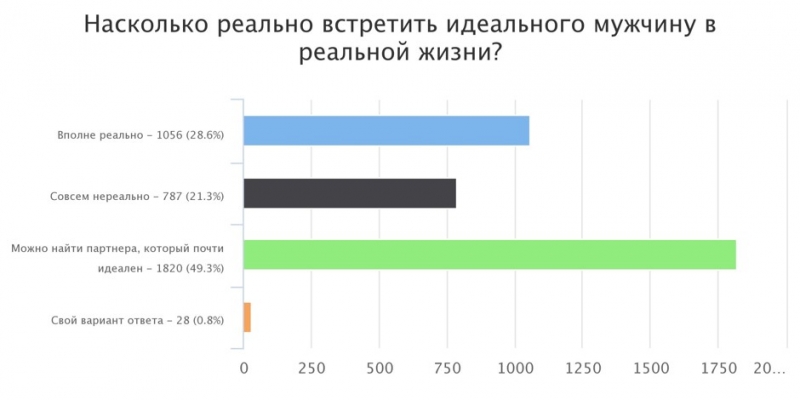 Мечтать не вредно, поэтому мы спросили у наших читательниц о том, каким должен быть идеальный мужчина.Мир несовершенен, а люди — и подавно. Но иногда так хочется придумать для себя нечто идеальное, хотя бы просто для того, чтобы ощутить хоть какую-то точку опоры. Должно быть, в конце концов, в переменчивой жизни хоть что-то постоянное — пусть и выдуманное. 3690 читательниц приняли наш призыв пофантазировать и поучаствовали в опросе «Каким должен быть идеальный мужчина». И вот что мы узнали. В идеале избранник должен быть немного старше. Этот пункт выбрали 69,1% опрошенных. Большинство все-таки предпочитают видеть рядом с собой мужчину более взрослого. Скорее всего, женщины связывают возраст со зрелостью. Впрочем, есть и другие мнения: — Годы не имеют значения, куда важнее зрелость мужчины, а она от количества лет не зависит; — Минимум на пять лет младше, максимум — на пять лет старше. Но лучше — младше; — На 10 лет младше; — Даже не знаю. Что касается дохода мужчины, то большинство респонденток проголосовали за то, что идеальный партнер должен зарабатывать не меньше 90 000 рублей в месяц. Вот какими комментариям сопроводили свой выбор читательницы: — Чтобы имел возможность иногда меня баловать; — Главное, чтобы он обеспечивал основные требования свои и партнерши. На остальное можно и поднакопить; — Чтобы было возможным строить планы на будущее; — Это не мои деньги, так какая разница, сколько? — Никогда не задавалась целью узнать; — Мне не важен его доход, я живу только на свои деньги. Если спросить у женщин, какая профессия подходит для идеального мужчины, то окажется, что это не важно. Главное, чтобы был хороший доход — такой вариант ответа выбрали 57,4% женщин. Следующие по популярности ответы: руководящая должность — 17,6%, техническая специальность — 19,2%. Многим этот вопрос показался смешным: — Я же не сотрудника выбираю; — Главное, чтобы ему самому нравилось; — Не имеет значения, главное, чтобы уделял время мне после работы и не только в выходные. Что касается внешности, мужчине вовсе не обязательно быть Аленом Делоном. Главное — чтобы он был ростом выше избранницы. Этот пункт отметили 33,7% читательниц. — Главное, чтобы мы гармонично смотрелись вместе; — Мне важна не внешняя привлекательность, а его человеческие качества; — Он просто должен нравиться мне. Кстати, говоря о личностных качествах, женщины по-прежнему выбирают «ответственность и трудолюбие» — 51,2%. Но в комментариях, поясняют: лучше бы, конечно, в нем сочетались сразу все перечисленные варианты ответа. Также идеальный мужчина должен быть не обременен детьми, хотя довольно много респонденток сообщили, что их не смущают дети от предыдущих браков. Реально ли найти такого мужчину? Большинство женщин считают, что можно встретить человека, очень близкого к идеалу. И признаются, что их собственный партнер, конечно же, неидеален.