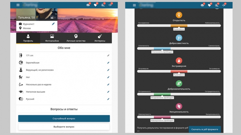 Татьяна ЯкимоваСайты знакомств — такая же реальность сегодняшнего дня, как платежи онлайн или доставка обедов на дом. И неважно, 20 тебе лет или за 50. Очень удобно, особенно, когда не хватает кавалеров. А в определенном возрасте начинает казаться, что их почти не осталось, кроме соседа-алкоголика да парочки бывших, от которых уже мутит. Но это иллюзия, которую можно и нужно развеять. Хотя бы попытаться! Терять-то все равно нечего. Я из тех женщин, кто не видит в старении трагедии. Даже Instagram свой назвала aging-shmaging (от англ. «старение-шмарение»). Хотя, не скрою, морщины на предплечьях и целлюлит на бёдрах украшением не назовёшь. Но тоже не повод для уныния. Все стареют, и мужчины тоже. А любви все возрасты покорны. Татьяна Искать на сайте мужчину накануне пенсии — не значит играть в игры «не по возрасту». Ничего унизительного. Просто попытка найти близкого человека. Главное — понять, кто близок именно вам. Это очень важно и для создания гармоничной пары, и для сохранения самооценки, если вдруг кто-то вами пренебрег. Вам никогда не нравились альфонсы? Тогда зачем переживать, что кто-то спросил, есть ли у вас приданое? Ваше главное богатство — вы сами. Понравившийся мужчина ищет, кого помоложе? Пусть ищет, флаг ему в руки. Вы тоже не его ищете. А того, кто вам понравится своими жизненными принципами и устоями. И которому понравитесь вы. Сложно? Не сложнее, чем в реальности.Единственное противопоказание — вы ищете кого-то, чтобы заполнить пустоту в жизни и душе. Если ваше существование кажется настолько скучным и бессмысленным без мужчины, что вы готовы вцепиться в любого, — не ходите на сайт знакомств!Вы попадетесь на первую же удочку внимания, которая на 99 процентов окажется лживой. Вам нужна помощь психотерапевта, чтобы поверить: жизнь не может быть совсем уж пустой. Даже если она иногда кажется таковой. А когда поверили — добро пожаловать! Возможностей — полно. Я — одинокая, привлекательная, 58-летняя — выбрала T*** (многие подруги хвалили) и D*** для пожилых (давайте называть вещи своими именами). D*** оказался более комфортным. Честно предупреждает, что бесплатно только анкета (интересная, кстати, заставляет задуматься и отвечать на вопросы, минимально приукрашивая себя), подбор подходящих кандидатов (экономит время поиска) и лайки. T*** красивее и современнее, зато начинает требовать деньги внезапно. Профиль Татьяны в Т*** D*** я перевела две тысячи за три месяца, а в T*** зарегистрировалась без привилегий. Правильно сделала: тамошние дядечки чаще заставляют вспомнить поговорку «седина в голову — бес в ребро» и разными способами дают понять, что женским вниманием не обделены. Так что основной упор я сделала на D***. На обоих сайтах выложила фотографии, на которых я вполне узнаваема и морщины не зафотошоплены. Положенный в день десяток кандидатов лайкала без претензий к их внешности, но анкеты изучала скрупулезно! Писать первой не стеснялась — особенно тем, у кого лица добрые, а в анкетах что-то зацепило. И началось общение. Мужчин за 50, жаждущих обрести счастье с ровесницей, на D*** очень много! В подавляющем большинстве — без жилищных проблем. Уровень достатка — средний и ниже среднего. Есть, есть зажиточные, но о них отдельно. Почти все в разводе или вдовцы. Ищут близкого человека. Ищут душевность. Проявишь ее — начинают потихоньку доверять. Вообще, кое-кто гот
