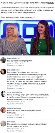 Более того, перед самым наступлением Нового года выяснилось, что и мать Ольги Рапунцель, Татьяна Владимировна Григорьевская, решилась стать полноценной участницей телепрограммы. Дмитрий Дмитренко, который еще совсем недавно не переставал ссориться и скандалить с тещей, теперь не только принес ей свои искренние извинения, правда, пока только в телефонном разговоре, но и пригласил маму Ольги в гости на проект.