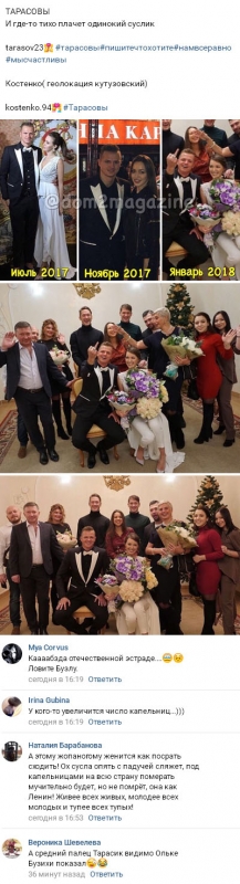 Теперь фанаты Бузовой весьма беспокоятся из-за того, как на ней отразятся свежие новости об этой паре. Исходя из фотографий, опубликованных в Интернете и обладающих геолокацией «Кутузовский ЗАГС», становится ясно, что Костенко и Тарасов по окончании отпуска немедленно вступили в официальный брак. Окружающие не сомневаются в том, что Ольга станет по-настоящему страдать, наблюдая за выставленным напоказ счастьем Дмитрия, хотя и будет стремиться держаться с достоинством.