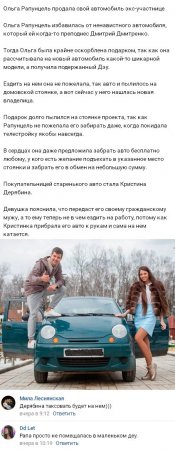 Однако участнице телешоу все же удалось расстаться с нежеланным презентом. Выяснилось, что приобрести автомобиль, который Рапунцель готова была отдать абсолютно даром любому, кто пожелает его взять, вознамерилась Кристина Дерябина. По словам самой молодой женщины, эта покупка является для нее мерой временной и принимаемой в связи с определенными обстоятельствами.