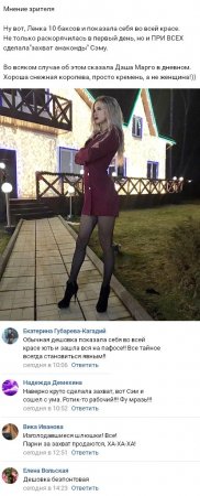 23 января 2018 года выяснились весьма пикантные и непристойные детали интимной близости между Еленой Хроминой и Саймоном Марданшиным, хотя сами молодые люди абсолютно не стесняются подобных вещей. Всем известно о том, что Саймон без колебаний отказался от развития взаимоотношений с Маргаритой Овсянниковой, продолжавшихся на протяжении нескольких недель, и от участия в состязании «Свадьба на миллион». Фанаты телешоу прекрасно знают и о том, что изменить свои намерения Марданшина заставило недавнее прибытие с Острова любви Елены Хроминой. Между этими двумя вспыхнула самая горячая страсть в результате первого выезда вдвоем без наблюдения вездесущих камер. При этом сам юноша не отрицает и того факта, что употребление алкогольных напитков только ускорило события и усилило взаимное влечение участников телестройки. Смотрите также: слухи и сплетни дом 2 Но почти никто не мог себе представить, что Лена, которой, как оказалось, нравится играть роль роковой разлучницы, опустится до такой степени. Выяснилось, что Хромина не только без всякого смущения позволила себе сексуальный контакт с уже занятым товарищем по периметру за сумму всего лишь в 10 долларов, но и с легкостью выполнила «захват анаконды» в присутствии потрясенных ее поведением Дарьи Лымарь и Иосифа Оганесяна. Стоит обратить внимание на то, что ни Елена, ни Саймон нисколько не раскаиваются в случившемся. Более того, Марданшину настолько понравилась близость с Хроминой, что он уже полностью забыл о существовании Овсянниковой и, видимо, молодой человек в настоящее время всецело готов к построению новых отношений. Свое мнение о поведении Елены Хроминой и Саймона Марданшина вы можете высказать в комментариях.