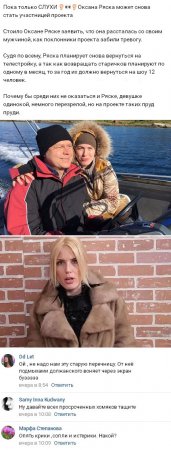 Впечатление от снимка и мнение о том, будете ли вы рады возвращению на телепрограмму Оксаны Ряска, вы можете изложить в комментариях.