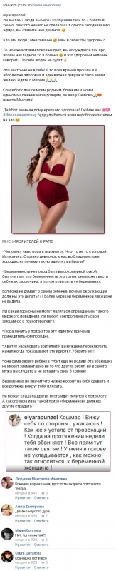Прояснить ситуацию предпочла сама Рапунцель. Нет ничего удивительного в том, что молодая женщина абсолютно не согласна ни с одним из диагнозов, которые были ей поставлены. По словам Ольги, она, уже находясь в «интересном положении», прошла все требуемые медицинские осмотры, и доктора нисколько не усомнились в прекрасном состоянии ее здоровья, что касается и психики. Более того, Рапунцель считает нездоровыми и неадекватными людьми именно тех, кто позволяет себе писать различные нелестные вещи по ее адресу, к тому же все негативные высказывания таких людей звучат в отношении будущей мамы.