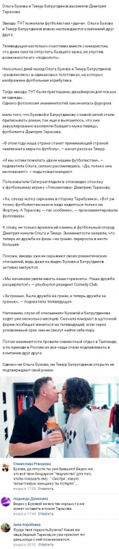 Свое мнение о том, следовало ли Ольге Бузовой допускать столь неприкрытую иронию в отношении Дмитрия Тарасова, вы можете изложить в комментариях.