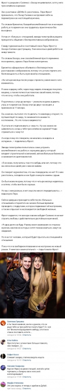В то же время сам Саленко, в отличие от девушки, настроен на настолько категорично. Парень уверяет окружающих, что они с подругой лишь поссорились и Фрост значительно преувеличивает, говоря об окончательном расставании.