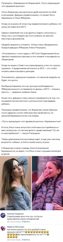 Свое мнение о том, имеются ли у Ильи Яббарова какие-либо серьезные намерения в отношении Ольги Жариковой, и как в этой ситуации следует вести себя Алене Савкиной, вы можете изложить в комментариях.