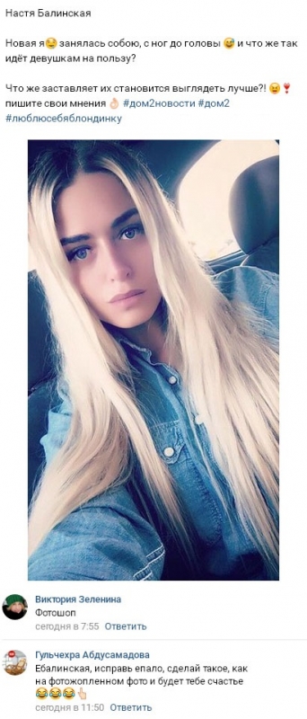 12 апреля 2018 года поклонники телешоу заметили, что Анастасия Балинская, решившаяся на кардинальные перемены в собственном имидже, стала выглядеть значительно лучше. Настя давно привыкла к язвительным насмешливым замечаниям, касающимся ее не совсем обычного внешнего вида. Периодически она подвергалась сравнению с прежним участником телепрограммы Гогеном Солнцевым, а подобные высказывания изначально являются оскорбительными. Смотрите также: дом 2 15 апреля 2018 Сама девушка неоднократно старалась оправдаться в глазах окружающих за неординарную внешность. Она даже предъявляла претензии специалисту в сфере пластической хирургии, который неудачно произвел ей трансформацию носа, что и вызвало настолько негативные последствия. Но, исходя из последних фотографий, оказалось, что Балинской потребовалось только изменить существующий имидж, чтобы по-настоящему похорошеть. Перекрасив волосы в светлый цвет и сделав себе другую форму бровей, Анастасия стала казаться гораздо более симпатичной внешне молодой женщиной, чему искренне удивились многие из приверженцев телестройки. В результате этого преобразования подписчики охотно сделали Насте множество восторженных комплиментов. Впечатление от снимка и мнение о том, действительно ли теперь Анастасия Балинская смотрится гораздо привлекательнее, чем раньше, вы можете изложить в комментариях.
