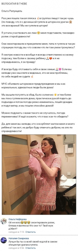 Однако, как только телезрители намекнули Оле на органы опеки, молодая мама немедленно принялась оправдываться из-за данного случая. По словам женщины, видео является обыкновенным монтажом, созданным хейтерами. Рапунцель подчеркнула, что в будущем она не станет спокойно терпеть такие действия.