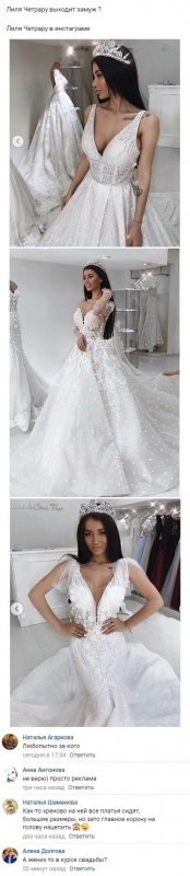Исходя из информации, полученной от самой Лилии, по возвращении в столицу девушка вплотную занялась подготовкой к намеченному торжественному мероприятию. В Интернете уже размещены ее фотографии в подвенечных нарядах, вызвавшие у ее фолловеров искренний восторг. Как утверждают подписчики, в таком виде Четрару можно без преувеличения называть принцессой. Некоторые из них даже дали Лиле совет использовать для свадьбы два платья, поскольку каждый из нарядов всецело для нее подходит, подчеркивая ее несомненную внешнюю привлекательность.