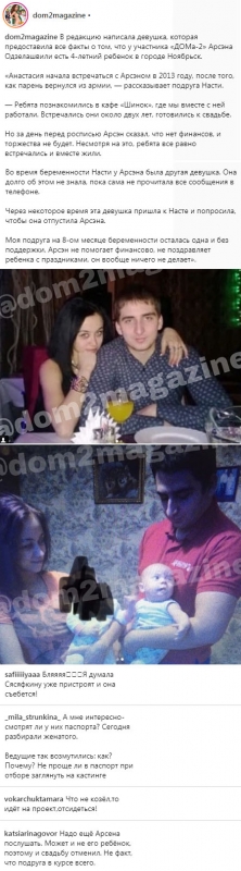 Накануне в редакцию проектного издания поступило обращение со стороны близкой подругой прежней возлюбленной Арсена. Эта девушка рассказала о том, что за пределами телепрограммы Одзелашвили оставил сына. По словам информатора, мальчику уже исполнилось 4 года. При этом сам Арсен, оставивший прежнюю любовницу на 8-м месяце беременности, все еще ни разу не появился в жизни экс-приятельницы и ребенка. Не вызывает сомнений и тот факт, что персонаж телепроекта никоим образом не оказывал сынишке и материальной помощи.