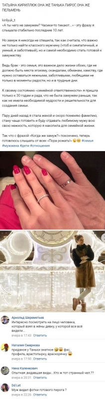 Однако накануне молодая женщина все же решилась связаться с подписчиками, причем ради того, чтобы сообщить им о позитивных переменах в ее судьбе. По словам Татьяны, на протяжении последних 10 лет ее не переставали расспрашивать о том, как скоро она намеревается выйти замуж, однако сама бывшая жительница периметра решилась на столь ответственный шаг только по приближении к 30-летнему возрасту.