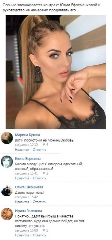 Однако в дальнейшем эта молодая женщина более не сможет удержаться в должности ведущей телестройки. Уже осенью текущего года контракт Ефременковой завершается, и, судя по всему, руководители телепроекта не намереваются его продлевать даже на год.