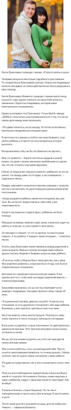 Уже в конце минувшего года фанаты Нелли были искренне потрясены известием относительно распада ее семейной жизни. Однако в то время как все с нетерпением дожидались соответствующих детальных сведений, сама Ермолаева все же поступила мудро и не стала посвящать посторонних людей в то, что на самом деле произошло в ее семье. Более того, Нелли постоянно подчеркивала, что по-прежнему испытывает к Кириллу Андрееву искренне уважение и симпатию, причем экс-героиню телестройки по-настоящему радовало то обстоятельство, что она и Кирилл смогли в этой ситуации остаться друзьями.
