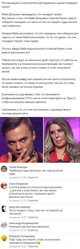 Майя Донцова и Алексей Купин решили покинуть проект - «НОВОСТИ ДОМ 2»