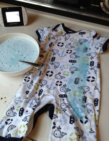 5. Сделайте «гремучую смесь» для удаления пятен, которая вмиг очистит одежду без вреда для ткани. Рецепт прост: 2 части пероксида водорода, 1 часть жидкого средства для мытья посуды, 1 часть пищевой соды.