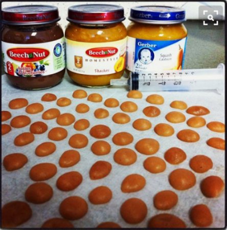6. С помощью шприца сделайте из детского пюре замороженные конфетки. Ребенку так проще есть, не нужно будет брать ложку, если вы идете гулять, вдобавок ко всему, этот хак еще послужит вам, когда начнутся прорезаться зубки — ребенок будет их рассасывать и успокаивать свои десны. Только не забудьте немного их охладить.