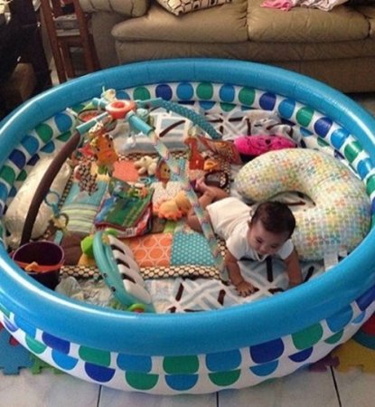 9. С функцией «детский манеж» идеально справится и надувной детский бассейн, причем это обойдется вам в 3-5 раз дешевле. К примеру, на ozon.ru бассейн продается за 590 рублей, а манеж — за 1949.