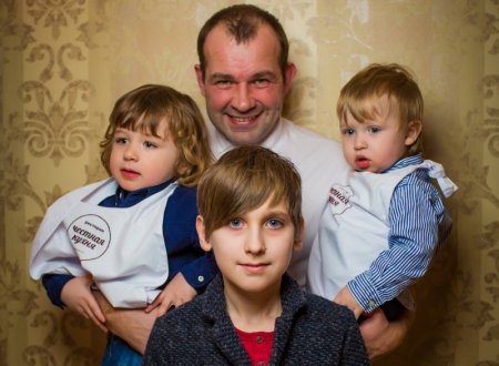 Сергей – владелец и шеф-повар ресторана «Честная кухня» и кафе «Федя, дичь!», а еще – отец 14-летнего Егора, 6-летнего Степана и 4-летнего Прохора.