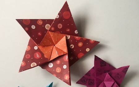 Есть тысяча и один способ украсить новогоднюю елку. Но когда на ней висят игрушки, сделанные своими руками, по-настоящему проникаешься духом этого семейного праздника. Х удожник и мама двоих детей Людмила Финк подготовила 4 видеоинструкции, как смастерить оригинальные елочные игрушки. © Фото предоставлено автором Шапочка Нам понадобится: ? картонная трубочка от туалетной бумаги; ? пряжа. От картонной трубочки отрезаем колечко шириной 1,5 см. Из пряжи нарезаем 60 нитей длиной примерно 34 см. Делаем петельку из нити, продеваем в кольцо и затягиваем. Повторяем со всеми остальными нитями то же самое. Когда кольцо полностью обвязано, все нити засовываем внутрь кольца снизу и вынимаем с другой стороны. Затем расправляем. Завязываем пучок нитей, формируем ножницами помпон. Милая шапочка готова. Снеговик из носка © Фото предоставлено автором Нам понадобится: ? 2 носка; ? булавки, пуговицы или бисер. Берем первый носок. Если он слишком длинный, нужно отрезать голенище. Наполняем носок рисом, затягиваем ниткой. Делаем перемычку чуть выше середины, получается заготовка для снеговика из двух шаров. Делаем колпачок. Для этого отрезаем мысок длиной 10-12 см у другого носка, желательно – контрастного цвета. Из него же делаем снеговику шарф (узкая полоска ткани). Или шьем колпачок сами. Делаем снеговику глаза. Быстрый вариант – вставить булавки, но тогда детям в него не поиграть. Поэтому ради безопасности лучше пришить пуговицы или бисер. Бумажный шар © Фото предоставлено автором Нам понадобится: ? цветная бумага; ? клей-карандаш; ? веревочка или ленточка. Из цветной бумаги вырезаем круги одного диаметра. Лучше брать не одноцветную, а бумагу для скрапбукинга, тогда шар получится более нарядным. Всего у нас должно получиться 18 кругов для среднего шара, а для больших игрушек лучше вырезать побольше – 22-24 круга. Сгибаем все круги пополам. Хорошо проглаживаем место сгиба. Склеиваем заготовки, как показано на видео. Клеевым пистолетом в середину будущего шара вклеиваем веревочку, на которой он будет висеть. На веревочку можно нанизать несколько бусин для украшения. После этого склеиваем последние половинки. Шар готов! По этому принципу можно делать и другие фигуры. Бумажная звезда из одного листа © Фото предоставлено автором Для бумажной звезды я советую использовать не очень плотную двустороннюю бумагу. Для начала нам нужно взять равносторонний пятиугольник. На видео я показываю, как можно сделать его из квадратного листа. После этого сгибаем пятиугольник строго пополам в каждом из пяти направлений. Потом сгибаем нижнюю часть пятиугольника так, чтобы уголками она приходила в линии сгибов, как показано на видео. Повторяем со всеми сторонами пятиугольника. Если делать все правильно, то звезда сложится сама собой. Советую сначала потренироваться на простой бумаге. Такая звезда может украсить елку или стать декором для дома.