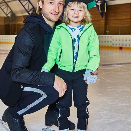 Евгений показал в своем аккаунте видео, в котором он с сыном после тренировки беседуют о том, что пора домой. Но малыш не хочет домой, он просится на лед и не понимает, почему он должен уходить.