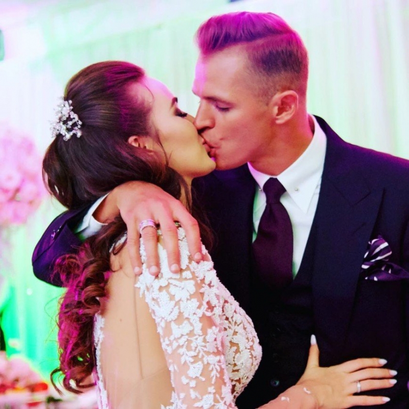 В начале года футболист Дмитрий Тарасов и модель Анастасия Костенко поженились. Сначала они оформили свой союз в загсе, после чего скрепили его «на небесах». После венчания пара сыграла пышную свадьбу, и по фотографиям, которые попали в сеть, многие решили, что молодая жена в положении.