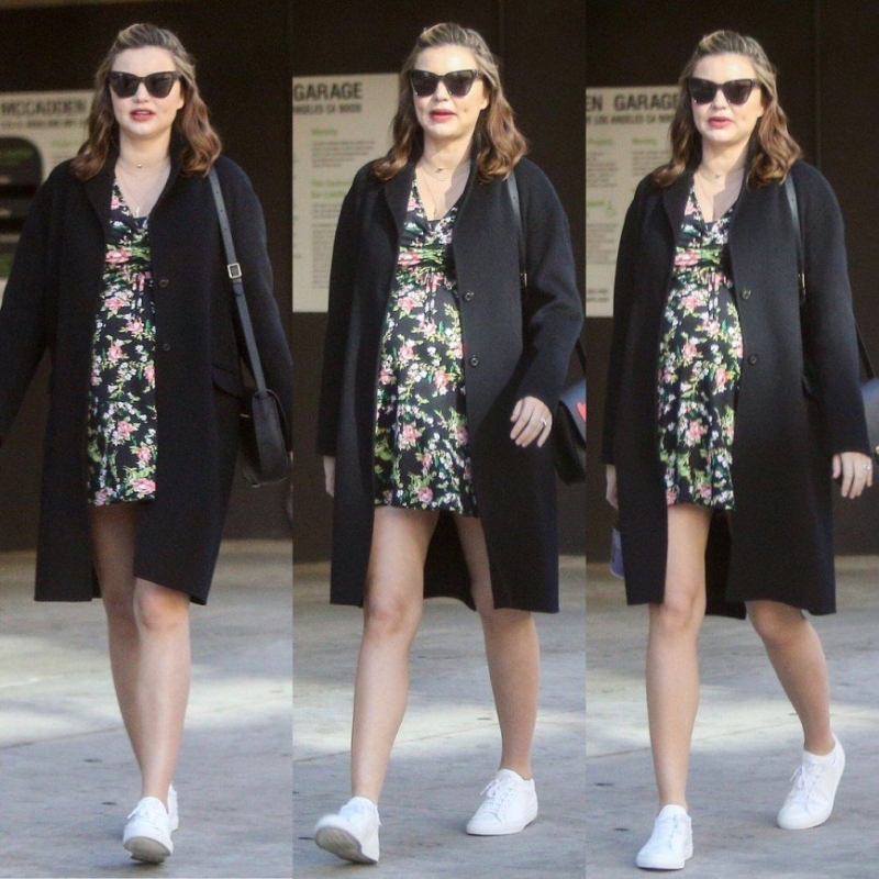 Уже совсем скоро Миранда и ее супруг, миллиардер Эван Шпигель станут родителями. Это будет первый совместный ребенок пары, Миранда уже воспитывает сына, родившегося от Орландо Блума. 34-летняя модель заметно округлилась и поправилась, но все равно предпочла надеть короткое платье с цветочным принтом, когда собиралась на прогулку с подругами.