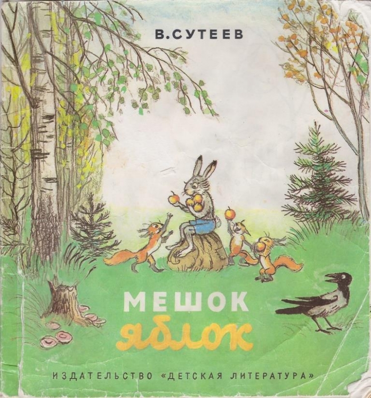 Потом у нас в доме появилась вторая книжка Владимира Сутеева, "Разные колеса. Сказки про находчивых зверей". Эти сказки были чуть длиннее, чем в первой книге, и все те же красивые иллюстрации автора, которые сразу узнаешь из сотни других. Особенно в этом сборнике меня порадовала сказка "Мешок яблок". Прекрасно помню, как я маленькая сидела с мамой на диване и рассматривала картинки в этой книжке. Книжка, кстати, чудом сохранилась, теперь ее читает уже моя дочь.