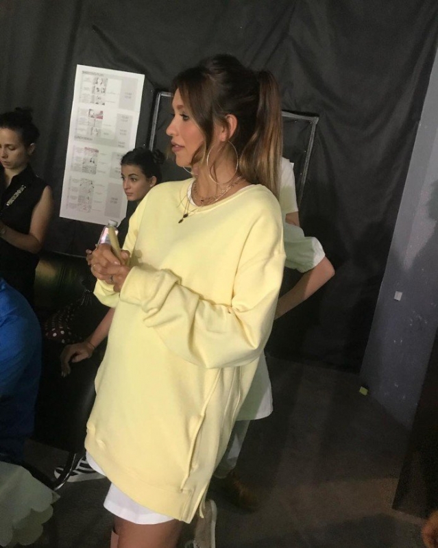 Красавица посетила студию радиостанции «Русское радио», где вместе с ведущей Аллой Довлатовой исполнила ритмичный танец. Регина предстала перед поклонниками с коротком черном платье с кардиганом и поясом. Несмотря на заметный живот, Тодоренко продемонстрировала резкие движения, которые некоторые зрители посчитали небезопасными для будущего малыша: