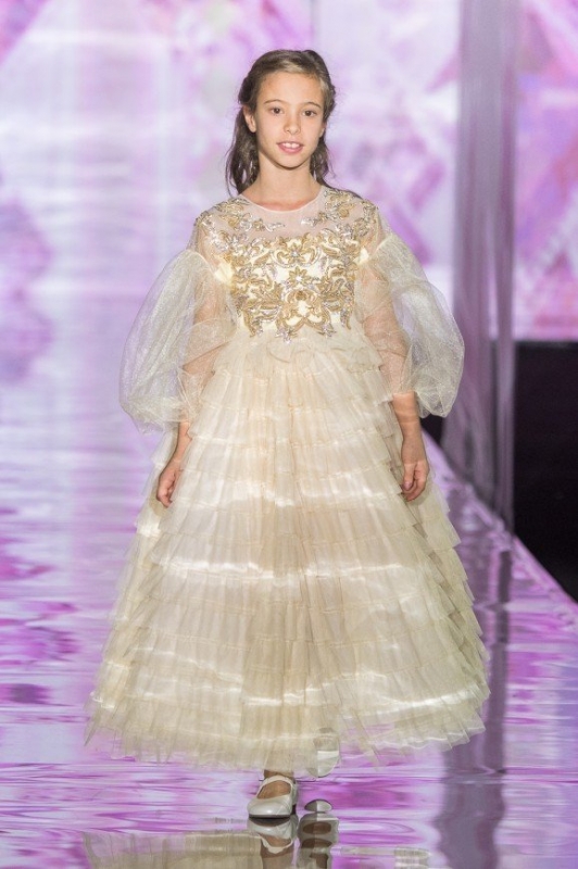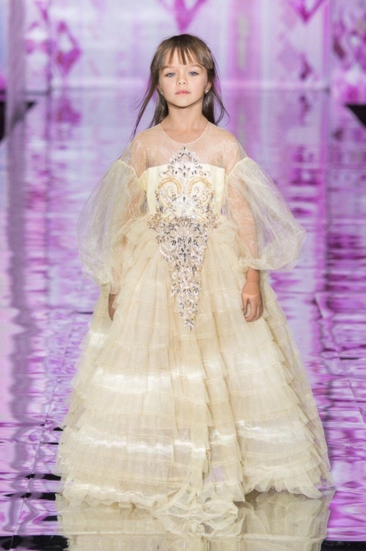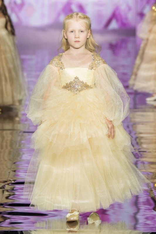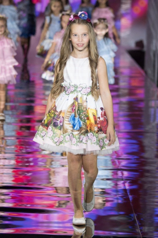 На хрустальном подиуме в Гостином дворе гости увидели поистине сказочное представление, где мир фантазий и красоты воплотили в жизнь юные красавицы и маленькие принцы - дети известных персон и профессиональные модели. Вдохновением для показа новой коллекции весна-лето 2019 стали сказки Шарля Перо, а главной героиней, конечно, Золушка.