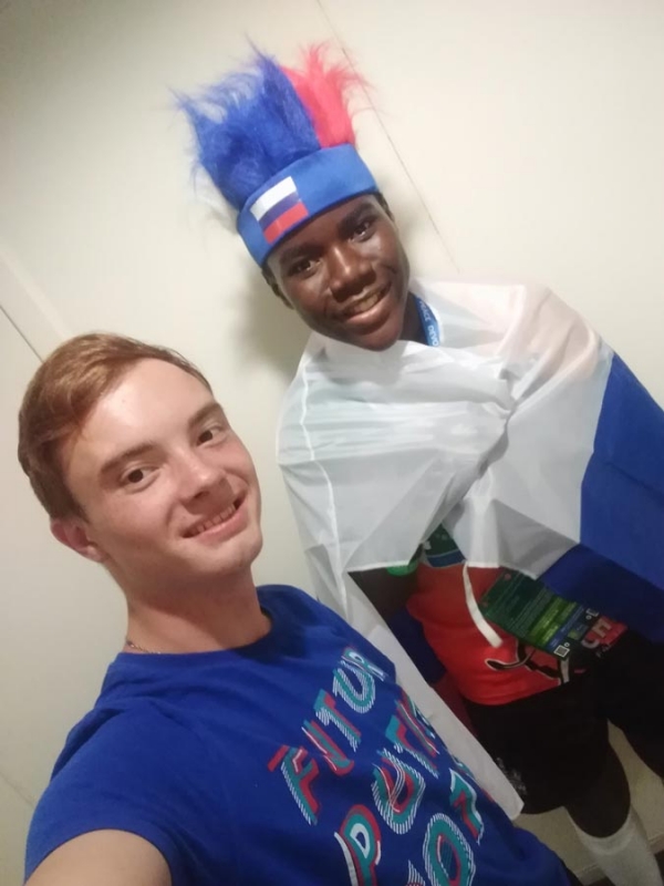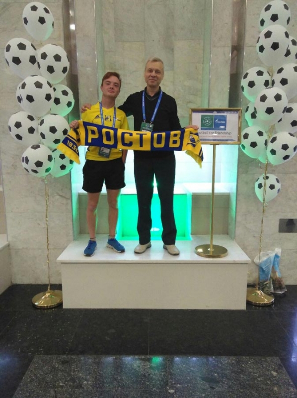 В этом году сын Серафим сдавал ЕГЭ, поступил на факультет журналистики университета. А вот в прошлом лето выдалась по-настоящему футбольным. Наша страна принимала Чемпионат мира. Меня с сыном пригласили в Москву на международный форум "Футбол для дружбы".