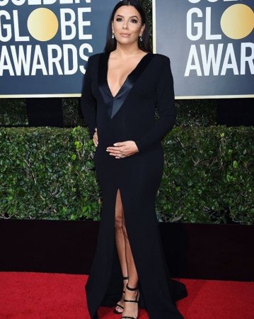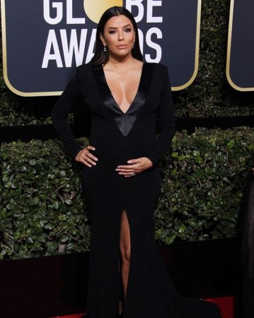 Видимо, Лонгория неплохо себя чувствует и не считает свое положение помехой светским мероприятиям. На 75-ю церемонию вручения наград за заслуги в области кинематографа и телевидения "Золотой глобус-2018" актриса пришла в строгом черном наряде. Правда, Ева была бы не Евой, если бы не оголила декольте, а стройные ножки не открывал глубокий разрез подола. Прическу знаменитость выбрала простую, гладко уложив волосы на прямой пробор. Макияж выполнен в довольно сдержанных тонах, да и украшений на Еве немного - массивное кольцо и серьги.