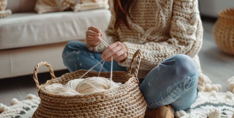 Вязка спицами всегда чуть менее плотная, нежели крючком, поэтому не вызывает больших затруднений в работе. Использовать можно самый простой узор — лицевую гладь, а после добавить украшение: бантик или помпон.