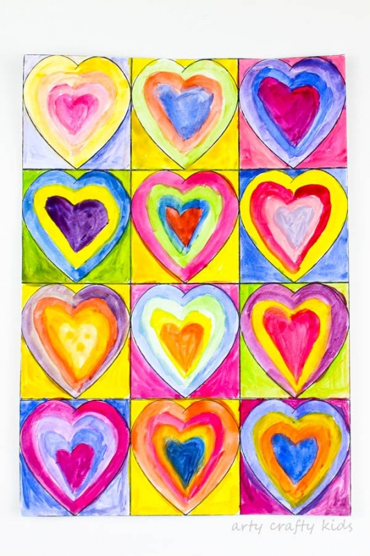 Наш пошаговый мастер-класс научит детей как нарисовать картину с сердцами в стиле Кандинского. Василий Кандинский - русский художник, основатель абстракционизма. Его работы часто используются учителями для изучения концепций смешения цветов и вдохновляют детей. Картина с сердцами в стиле Кандинского подходит как подарок для любого случая: дня рождения, 8 марта, Дня матери. Вы увидите подробную инструкцию как нарисовать картину с сердечками в его стиле. Как нарисовать картину с сердцами в стиле Кандинского Чтобы сделать картину с сердечками в стиле Кандинского, понадобится: шаблон рисунка с сердцами краски кисточка рамка для картины Распечатайте из интернета бесплатный шаблон рисунка с сердцами. Нанесите акварельные краски. Меньшее количество воды создаст более яркие цвета; больше воды - получим светлые оттенки. Заполните сердца контрастными цветами: светлыми и темными оттенками.Также раскрасьте квадрат,в котором находится сердце. Раскрасьте всю картину с помощью акварельных красок. Дайте время картине высохнуть. Как только картина высохнет, вставьте ее в рамку и наслаждайтесь результатом. Теперь вы знаете как нарисовать картину с сердечками в стиле Кандинского и сделать оригинальный подарок на любой праздник. Источник: www.artycraftykids.com