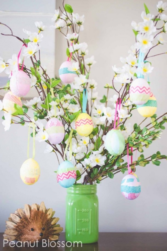 Традиция украшать пасхальное дерево пришла к нам из Европы относительно недавно, но уже прижилась у нас и даже обзавелась своими особенностями. Для этой поделки к Пасхе своими руками нужно закрепить несколько веток в вазе или кувшине, а потом украсить их яйцами-пустышками. Такие пасхальные игрушки из выдутых яиц также можно расписать и украсить дополнительными элементами.