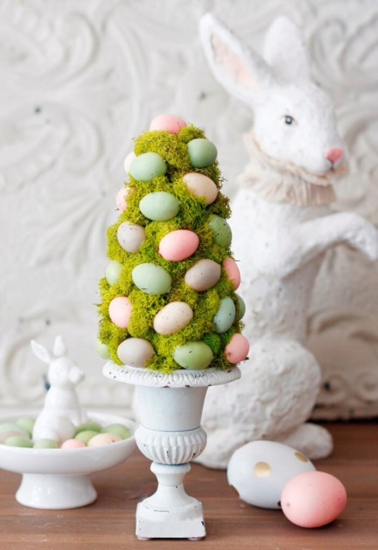 Топиарий на Пасху – это то же пасхальное дерево, только выполненное в особой технике. Такая поделка из пустых яиц понравится многим, но вот сделать ее под силу будет только взрослым или детям-подросткам, которые любят мастерить своими руками.
