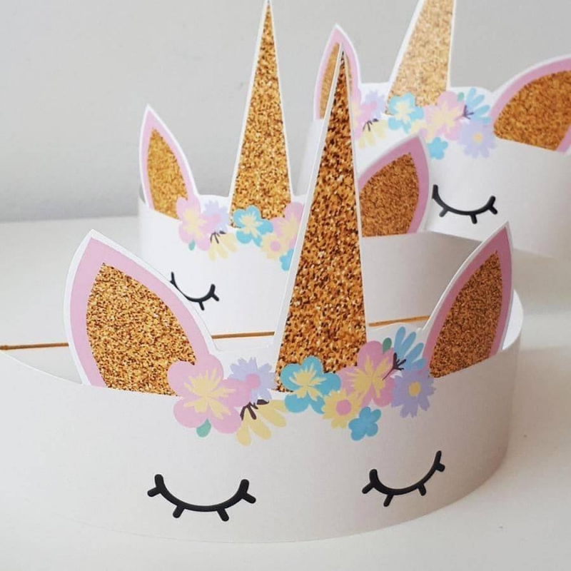 Каждой принцессе единорогов нужна своя корона! Чтобы сделать такую корону из бумаги своими руками, вашей девочке понадобится картон, фломастеры или маркеры, блестки. Цветочки для декора можно вырезать из цветной бумаги.