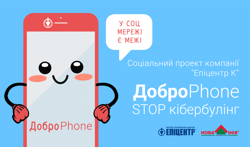 Как показал опрос ЮНИСЕФ, в котором приняло участие более 1 миллиона молодых людей из 160-ти стран мира, одним из самых мощных средств предотвращения и противодействия буллингу и кибербуллингу дети называли доброту. Именно поэтому главным героем и символом социального проекта компании «Эпицентр К» по противодействию кибербуллингу стал ДоброPhone — позитивный мобильный телефон, который призывает дружить в социальных сетях.