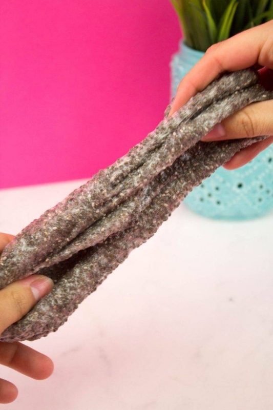Разминайте руками слизь в течение минуты. Слайм из семен чиа готов.